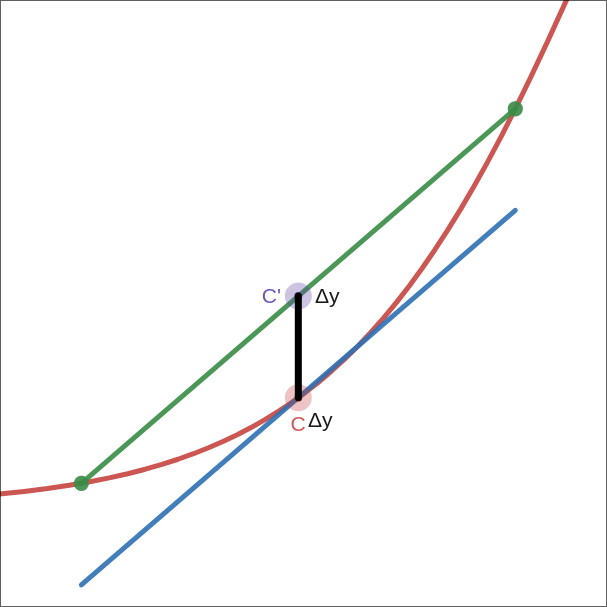 If we instead use the mean of our samples, we fix the concave case but now