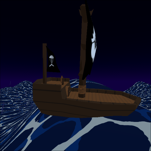 During the intro to a game I (perodically) work on, the player starts on a pirate ship. Realistic water doesn’t fit the style, and scroling textures on a big plane looked pretty boring. To make things a bit angrier I needed intense waves, and I needed those waved to actually affect the world.